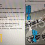 Je begint dus eerst aan de ‘achterkant’ (groene pijl) en haalt de VAS6621 bij het rode vierkantje er weer uit. Daarna begin je aan de ‘voorkant’ (gele pijl) en haal je de VAS6621 bij het rode vierkantje er weer uit. Dit doe je aan beide kanten van de geleiderrails. Het rode blokje dient als een soort tussenstop waar je oud vet kunt verwijderen. Hiermee wordt voorkomen dat je een ophoping tussen je rails krijgt van oud vet.